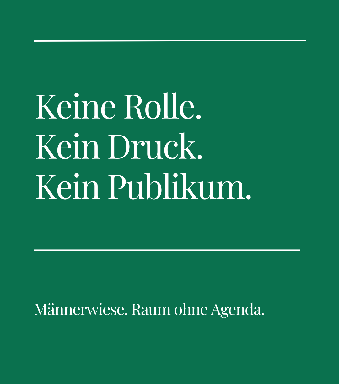 Wir sind es gewohnt, Räume zu gestalten: mit Agenda, mit Ziel und mit einer klaren Dramaturgie. Auch ich habe viele Jahre genau das getan. Meine Arbeit bestand darin, Struktur zu geben, Klarheit zu schaffen und Prozesse zu führen. Und nun entsteht ein Format, das genau darauf verzichtet. Die Männerwiese ist kein Seminar, kein Coaching und kein Training. Weiterlesen